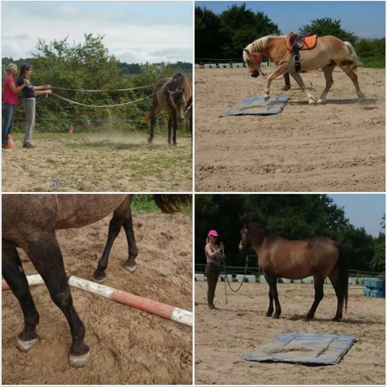1 - Accent mis sur la gestion corporelle ou Isopraxie et travail sur le fonctionnement du cavalier avec atteliers d'équilibre et de proprioception avant application à cheval.